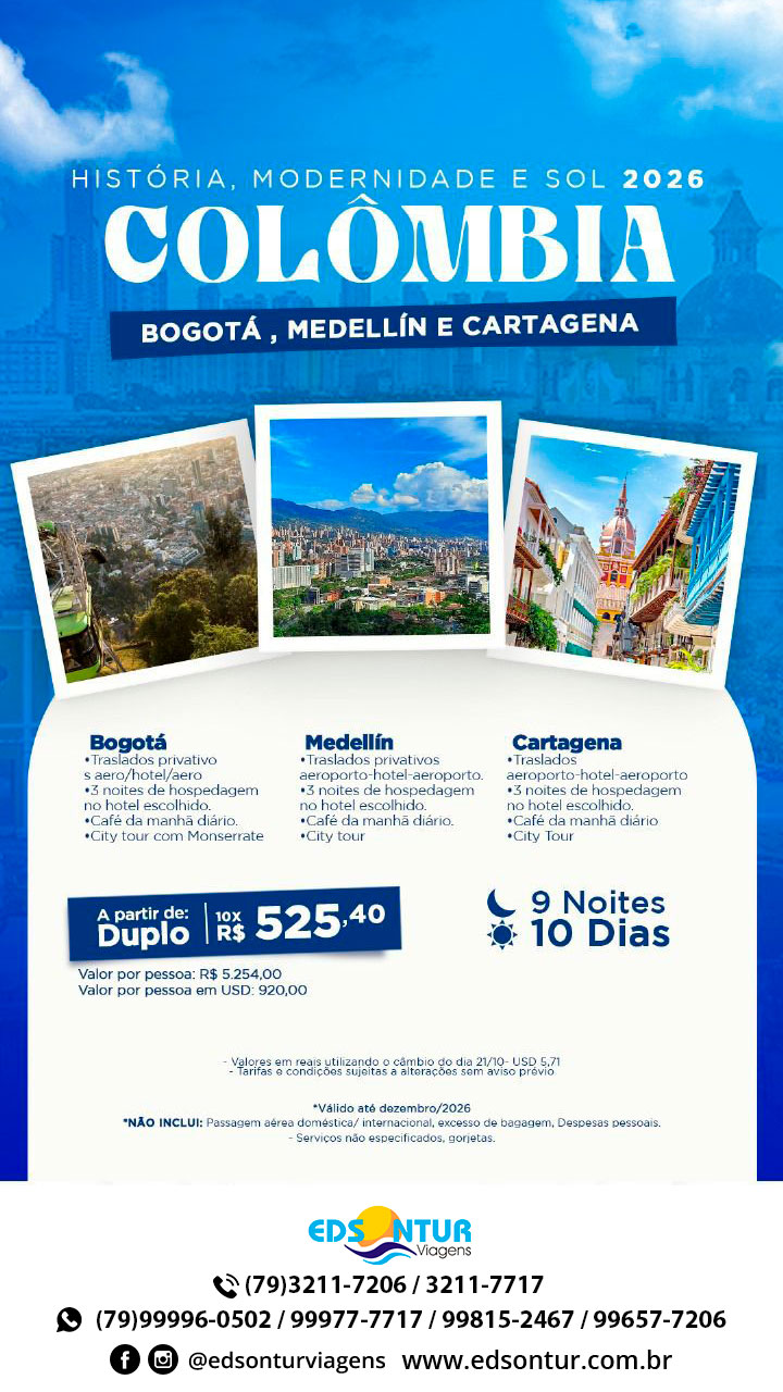 Colômbia – Bogotá, Medellín e Cartagena em 2026