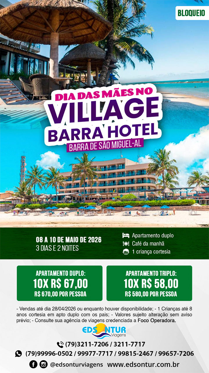 Para: Dia das Mães no Village Barra Hotel – Barra de São Miguel – AL