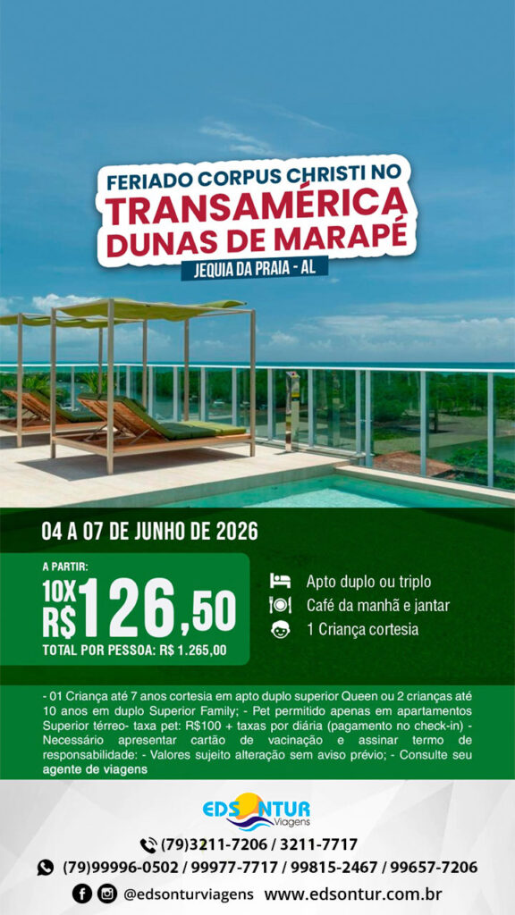 Feriado Corpus Christi no Transamérica Dunas de Marapé-AL