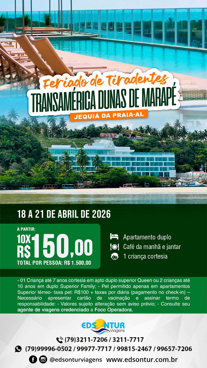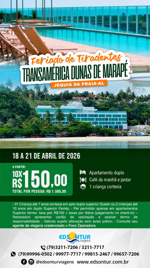 Feriado de Tiradentes no Transamérica Dunas de Marapé-AL