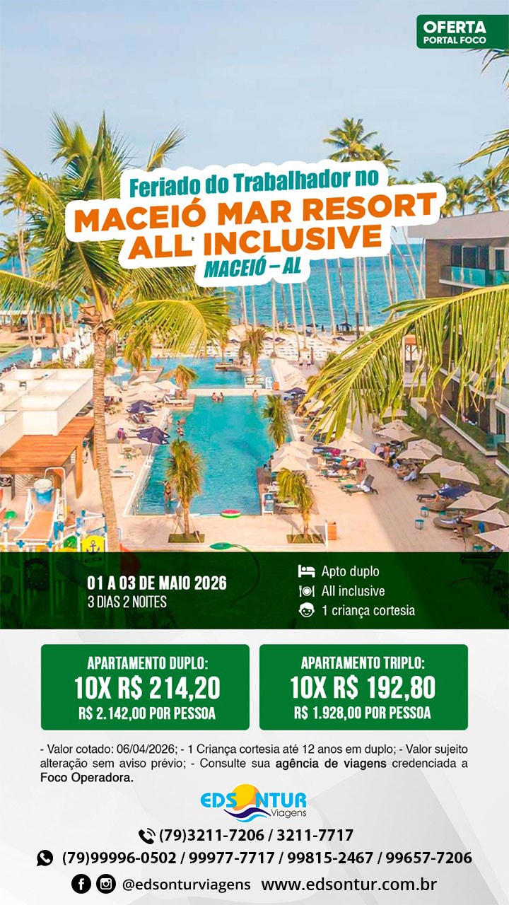 em Feriado do Trabalhador no Maceió Mar Resort All Inclusive