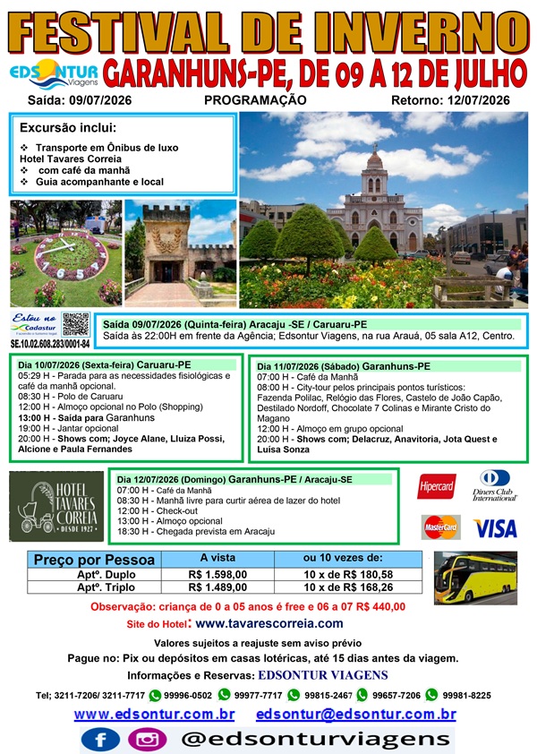 Reserve sua viagem através do telefone (79) 3211-7206 - 9 9977-7717 (VIVO)