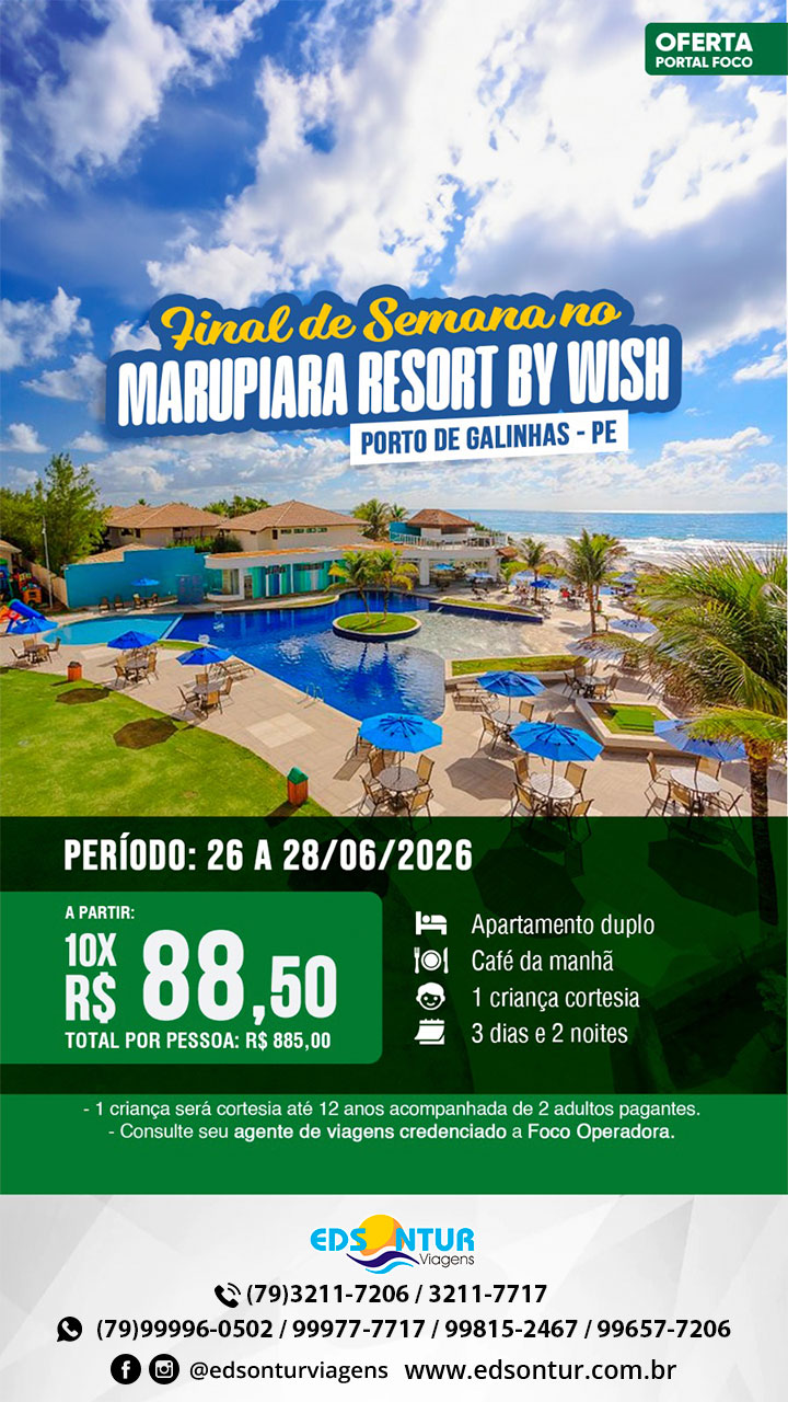 Para: Final de Semana no Marupiara Resort By Wish – Porto de Galinhas – PE