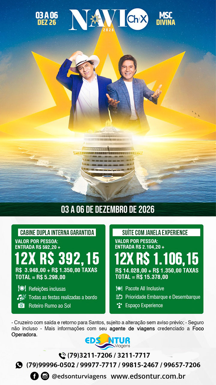 em Navio Chitãozinho & Xororó 03 a 06 Dezembro 2026