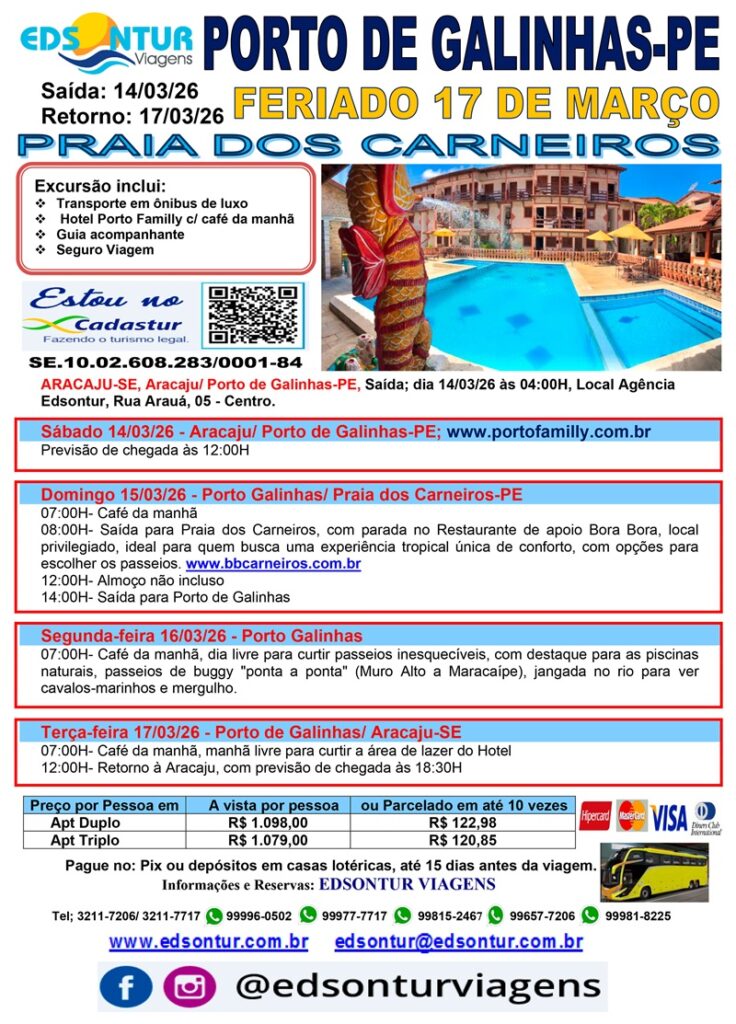 Reserve sua viagem através do telefone (79) 3211-7206 - 9 9977-7717 (VIVO)