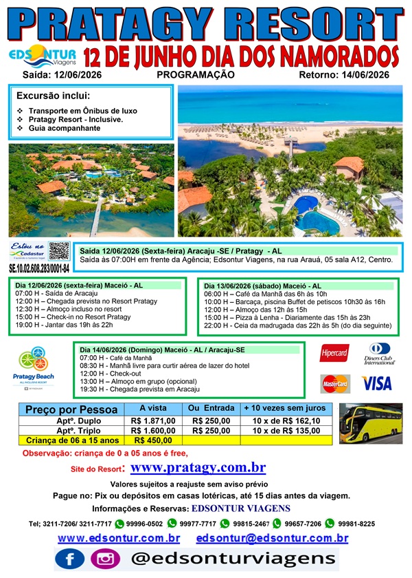 Para: Pratagy Resort em 12 de Junho Dia dos Namorados