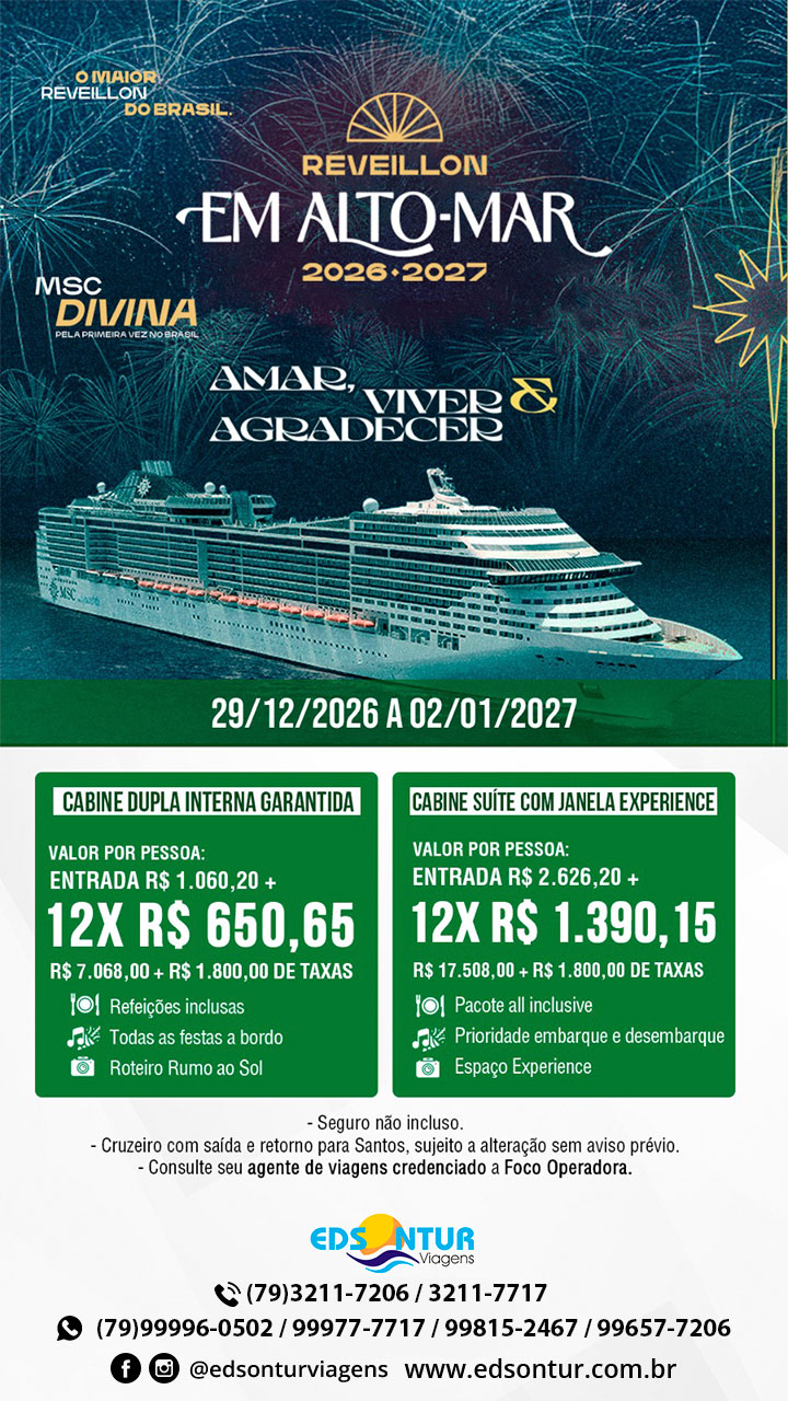 Réveillon Em Alto Mar em 2026 e 2027