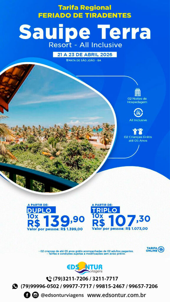 Para: Sauipe Terra Resort – All Inclusive – Feriado de Tiradentes