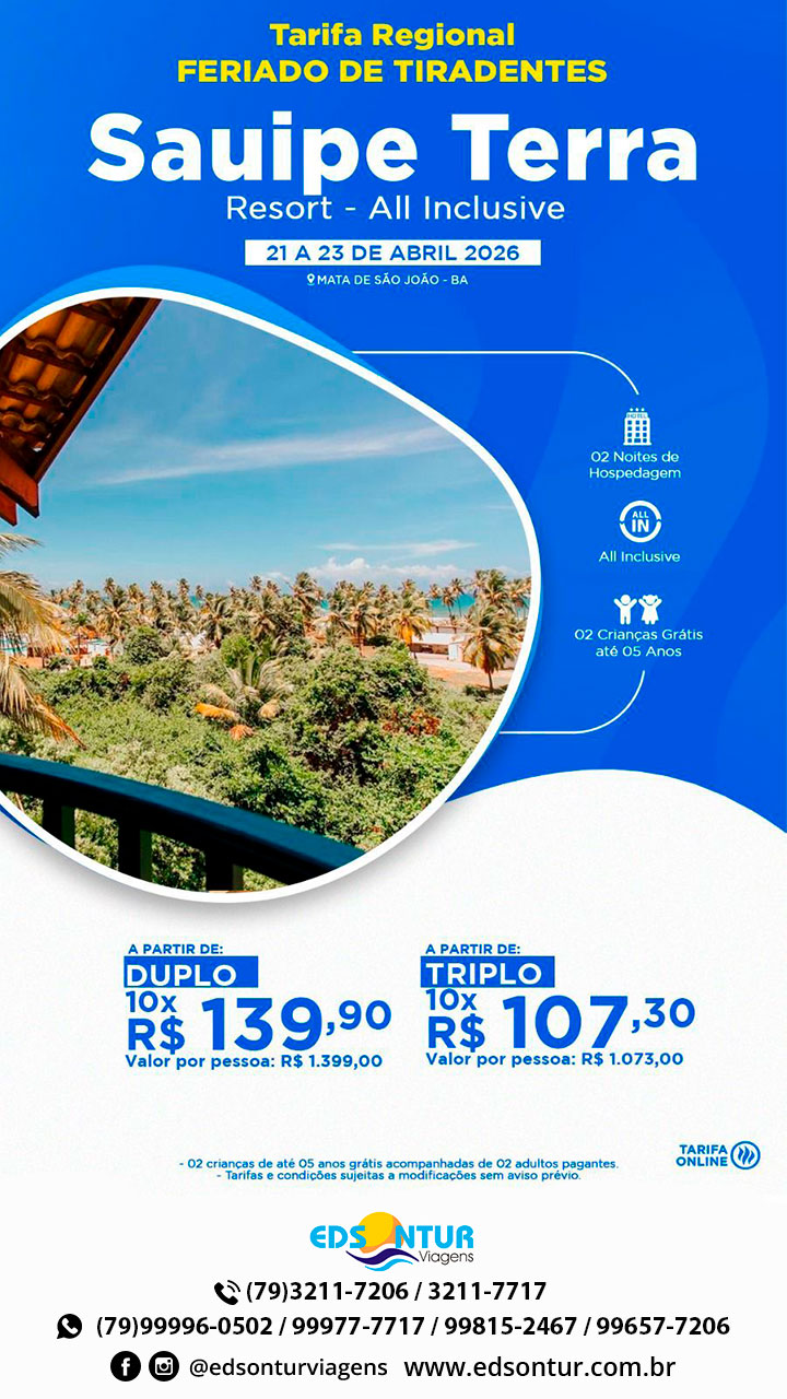 Sauipe Terra Resort – All Inclusive – Feriado de Tiradentes