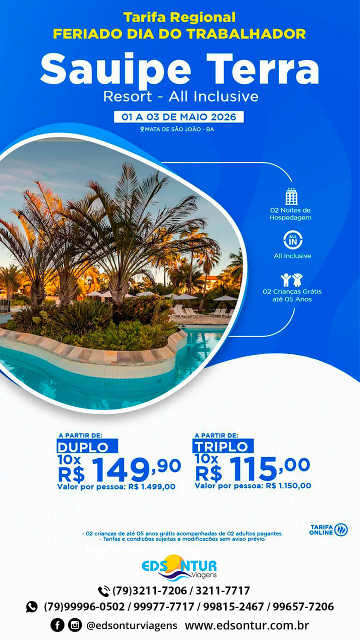 Para: Sauipe Terra Resort – All Inclusive – Feriado Dia do Trabalhador