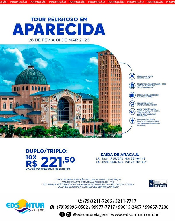 Tour Religioso Aparecida 13 a 16 de Maio 2026