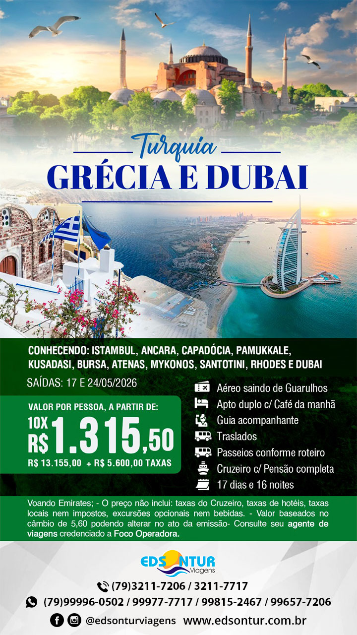 Turquia, Grécia e Dubai em Maio 2026