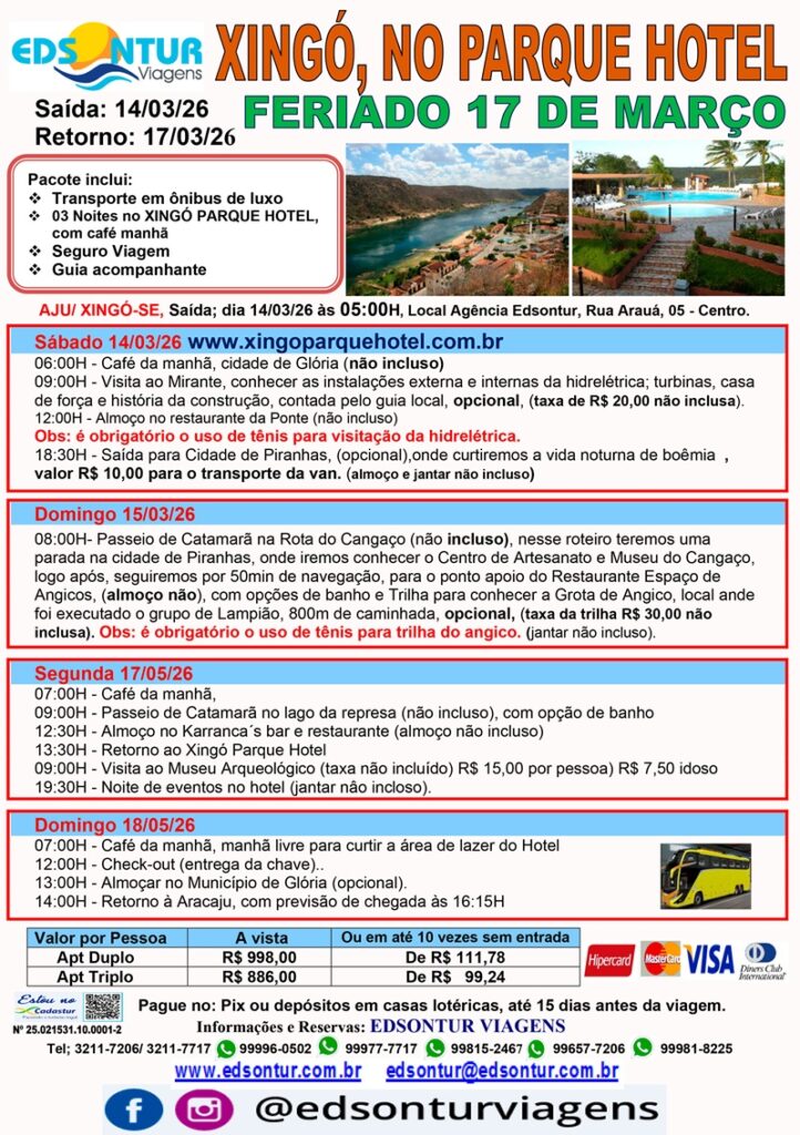 em Xingó no Parque Hotel Feriado de 17 de Março