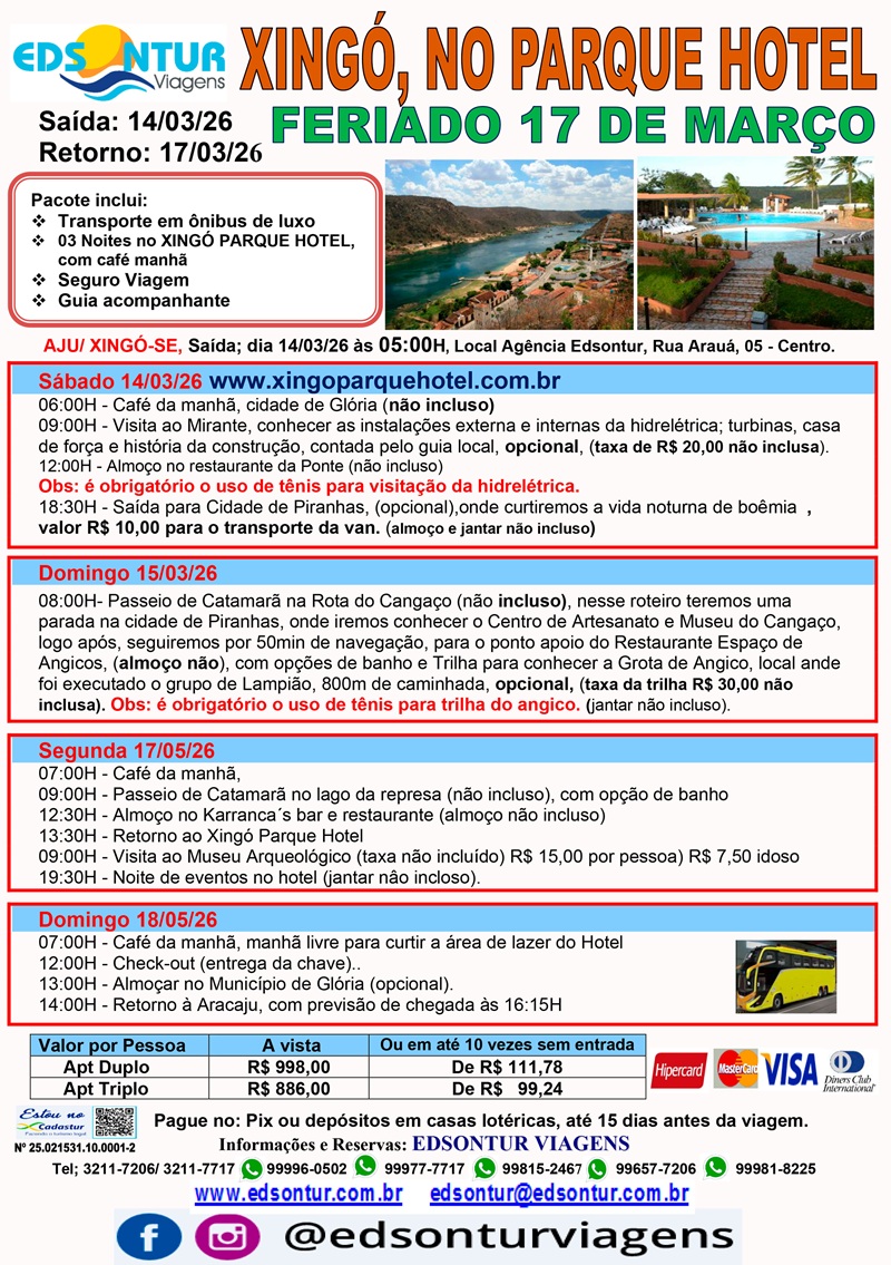 Reserve sua viagem através do telefone (79) 3211-7206 - 9 9977-7717 (VIVO)