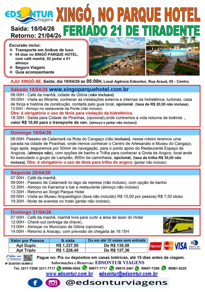 em Xingó no Parque Hotel Feriado de 21 de Tiradente